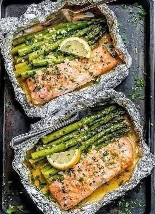 Baked Salmon with Asparagus & Garlic Lemon Butter (Low-Carb, Diabetic-Friendly)